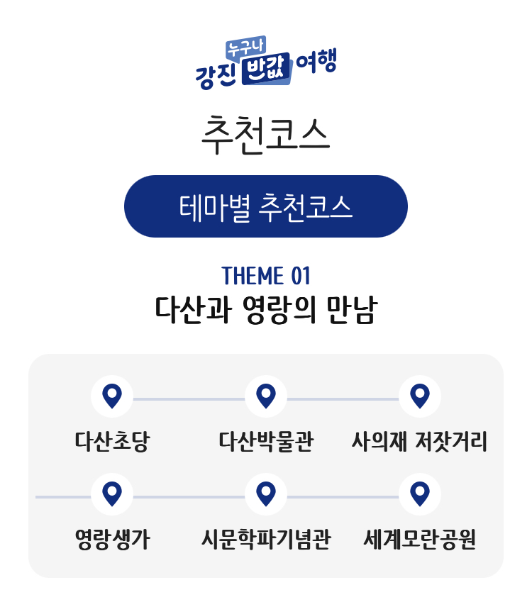 여행이 비싸다고 느껴졌다면, 이번 기회에 꼭 강진으로 반값여행을 떠나보세요.