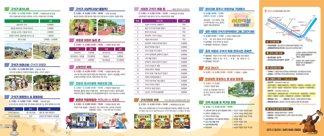 - 어린이날 기념행사: 어린이들을 위한 특별한 기념 행사와 놀이 시설이 준비되어 있어, 아이들이 즐거운 시간을 보낼 수 있습니다.