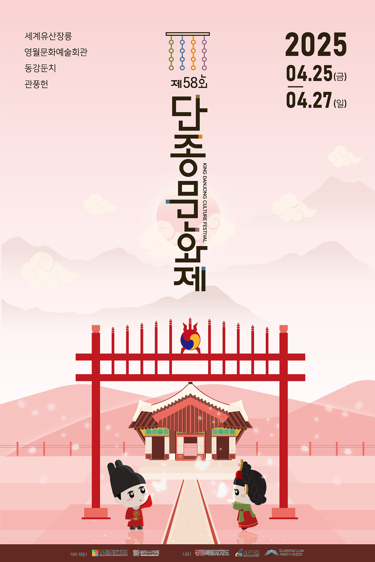 2025년 4월 25일(금)부터 27일(일)까지 3일간, 제58회 단종문화제가 영월읍 동강둔치를 중심으로 열립니다. 올해 축제는 그대에게로 가는 길이라는 주제를 바탕으로, 과거와 현재를 잇는 다양한 프로그램을 준비했습니다. 주요 행사로는 단종의 국장을 재현하는 단종국장 재현, 영령을 기리는 단종제향, 그리고 단종의 부인인 정순왕후를 기리는 정순왕후 선발대회가 마련됩니다. 이 외에도 칡줄다리기, 단종 유배길 체험 걷기 행사, 별별퍼레이드, 다양한 체험 프로그램과 문화공연이 이어지며, 방문객들에게 생생한 역사적 경험을 제공합니다.