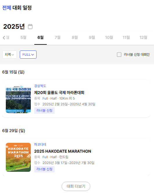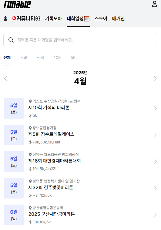 - 회원 가입: 러너블 웹사이트나 앱에서 회원 가입 후, 대회 정보 확인, 참가 신청, 기록 관리 등 다양한 기능을 이용할 수 있습니다.