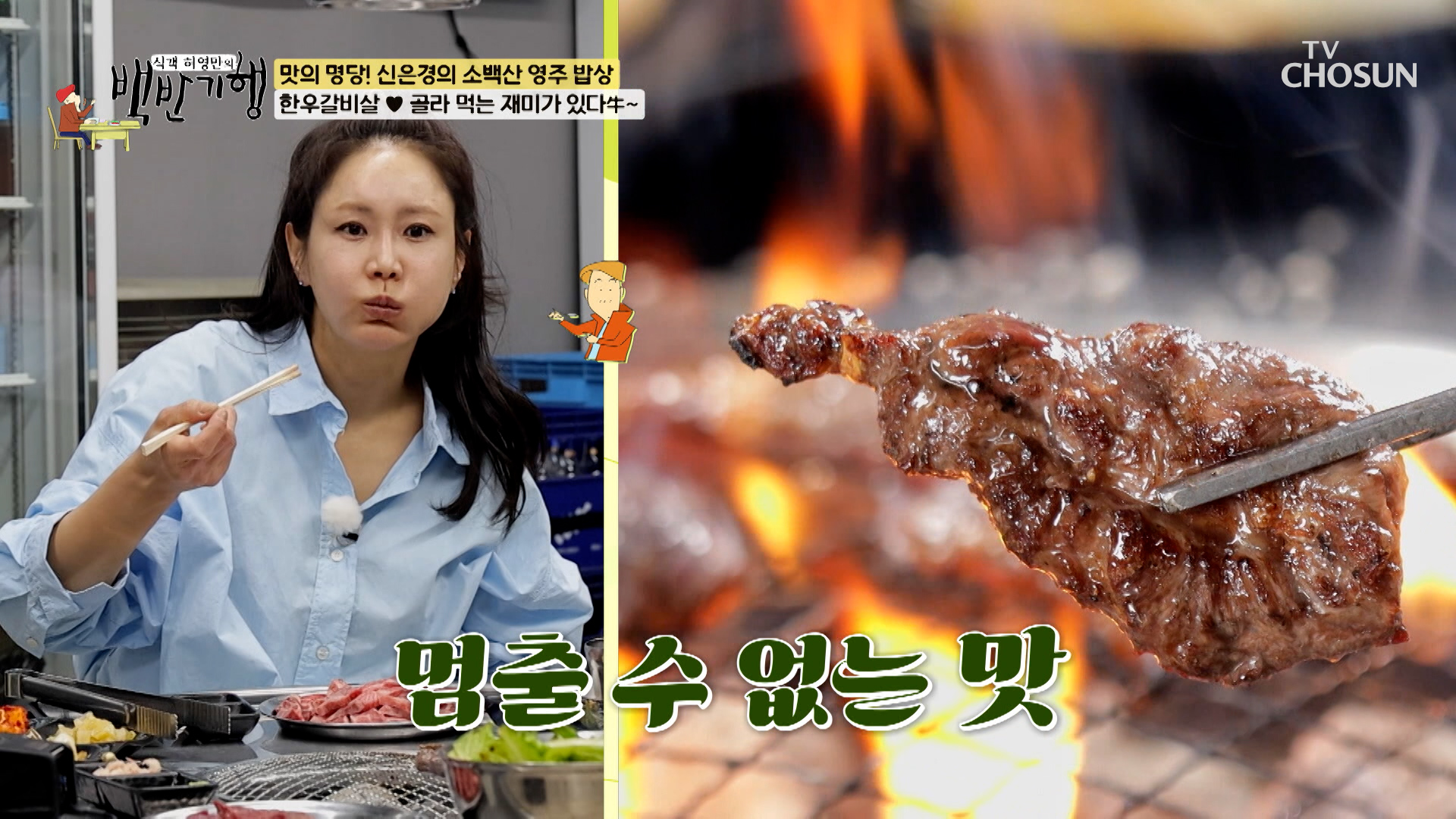 첫 번째로 신은경이 찾아간 곳은 영주시 순흥면의 소머리국밥집이었다. 비 오는 날 아침, 김이 모락모락 피어오르는 소머리국밥 한 그릇이 이곳의 하루를 연다. 겉보기엔 오래된 시골 국밥집처럼 보이지만, 30년 넘게 묵은 육수 속에는 시간이 쌓은 맛이 고스란히 녹아 있다. 진하게 우려낸 국물은 잡내가 없고 깔끔한 맛이 입안 가득 퍼진다. 신은경도 국밥 한 숟갈에 “속이 다 풀리는 것 같아요”라며 연신 감탄했다. 다데기를 푼 후의 국물은 조금 더 깊고, 뒷맛이 고소하다. 순흥의 한적한 풍경과 맞닿은 이 집은 단순한 식당이 아니라, 순흥 사람들의 ‘든든한 아침 습관’ 같은 공간이었다.