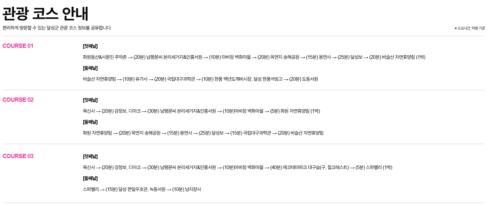 자가용을 이용할 경우, ‘유가사 공용주차장’ 혹은 ‘비슬산 자연휴양림 주차장’을 활용하게 되며, 주차 후에는 셔틀버스나 도보로 진입하게 된다. 특히 정상 인근까지 차량 진입은 불가능하므로, 어느 정도 걷는 일정은 감안해야 한다. 교통 혼잡을 피하기 위해선 평일에 방문하거나, 아침 8시 이전에 도착하는 것을 추천한다.