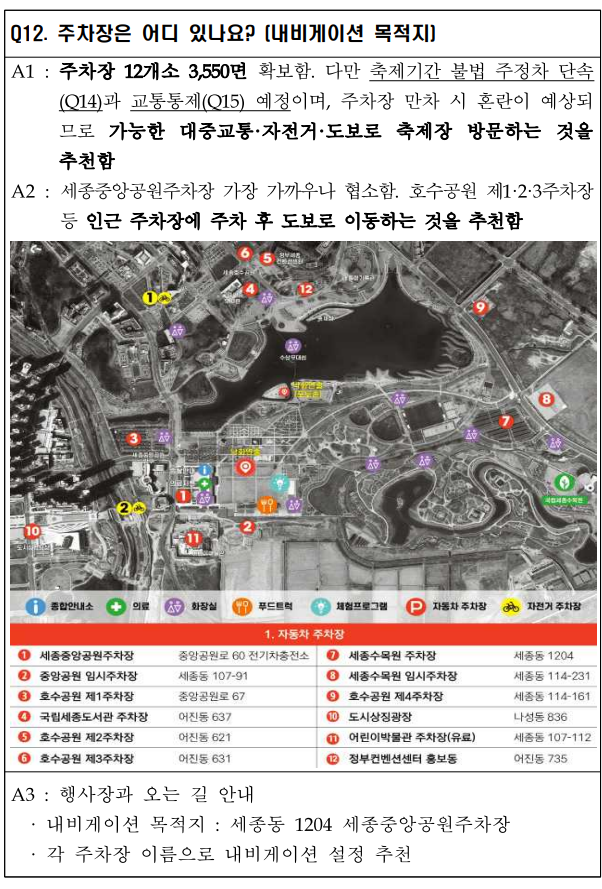 - 행사 당일 불법 주정차 단속 및 교통통제 시행 (17:00~23:00)