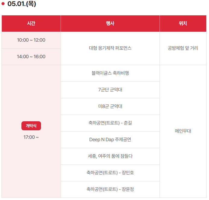 - 주차 정보: 축제 기간 동안 행사장 인근에 임시 주차장 및 대형 공영주차장 운영 (약 700여 대 수용 가능)