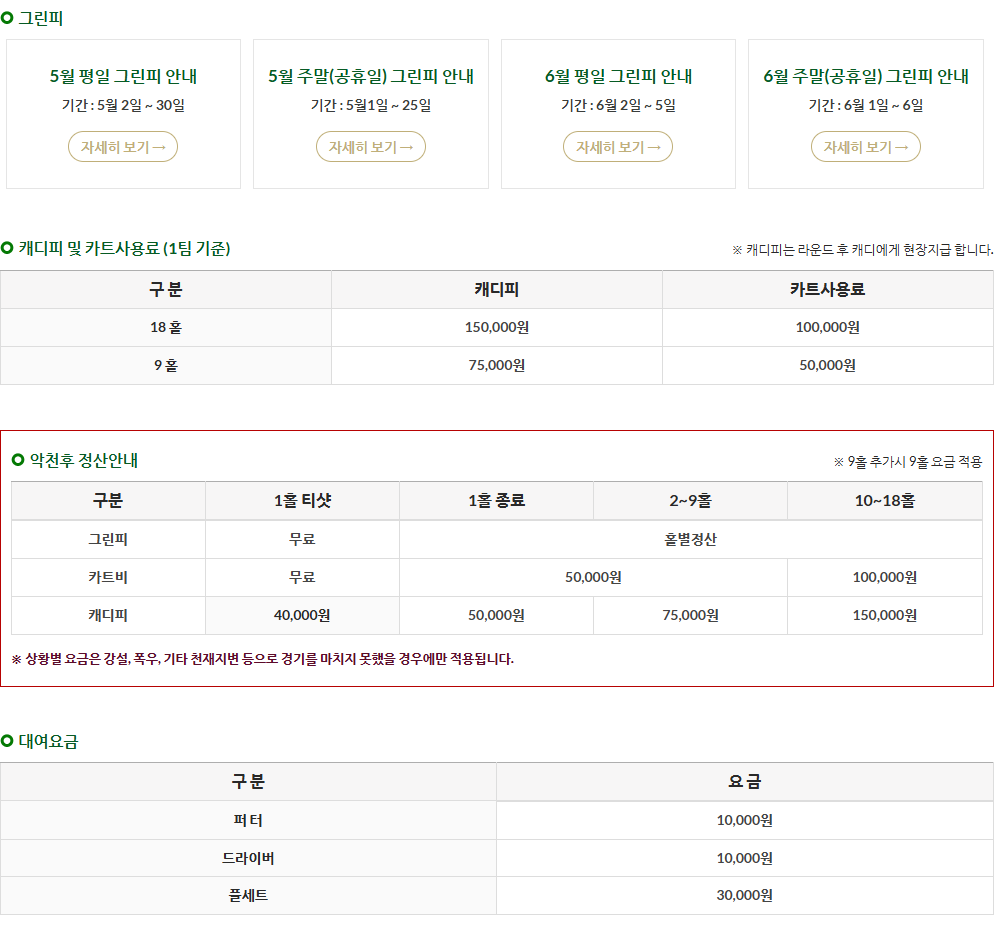 다만 여름철에는 잔디 관리가 잘 되어 있음에도 불구하고 기온이 높고 습도가 높은 날이 많아, 이른 아침 시간대 혹은 야간 라운드를 추천합니다.
