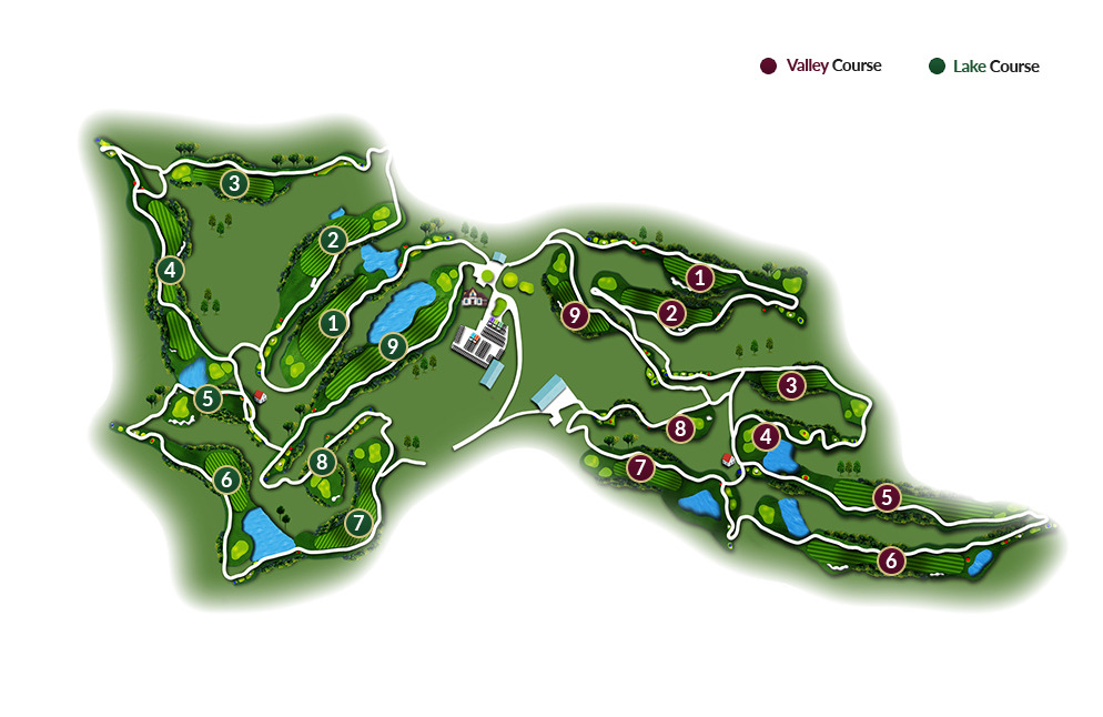 레이크 코스는 호수를 따라 배치된 홀들이 많아 경치가 뛰어나고, 밸리 코스는 능선을 따라 올라가거나 내려가는 형태로 되어 있어