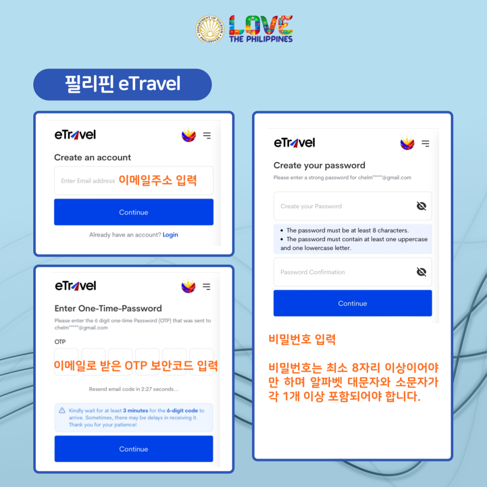 이트래블은 모든 필리핀 입국자에게 필수 제출 항목이며, 미리 등록하지 않으면 비행기 탑승 전 체크인 과정에서 불이익을 받을 수 있다. 특히 항공사에 따라 이트래블 등록 완료 화면을 제시해야 티켓 발급이 가능한 경우도 많아, 사전에 준비하지 않으면 공항에서 당황할 수 있다. 따라서 필리핀 입국을 앞두고 있다면, 출국 72시간 이내에 이트래블 등록을 완료하는 것이 안전하다.