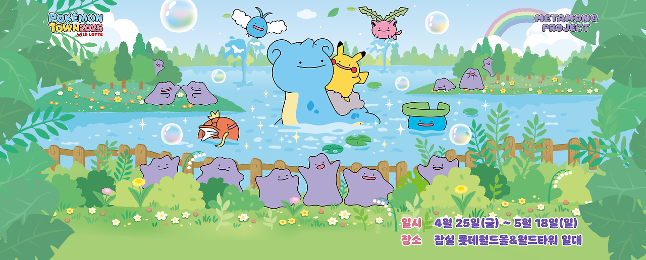 이번 포켓몬타운 2025의 중심에는 ‘메타몽’이 있다. 메타몽은 변신이라는 콘셉트를 가진 캐릭터답게 이번 행사에서 다양한 콘셉트로 모습을 드러낸다. 행사장을 찾는 관람객들은 각양각색의 메타몽 조형물과 포토존을 만날 수 있으며, 포켓몬코리아는 공식 채널을 통해 약 100여 마리의 메타몽들이 도심 한가운데를 점령했다는 설정으로 관람객들의 상상력을 자극하고 있다. 지난 해 '라프라스' 대형 조형물이 호수 위에 등장해 큰 화제를 모았던 것처럼, 올해 역시 현실과 환상을 넘나드는 설치 연출이 행사장의 몰입도를 한층 높여주고 있다.