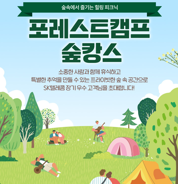 경기도 용인시 향수산 자락에 위치한 에버랜드 포레스트 캠프는 무려 9만m² 규모의 프라이빗 자연 생태 체험장입니다. 이 넓은 공간은 일반 고객에게는 공개되지 않고, 오직 SK텔레콤의 장기 우수 고객만이 ‘스페셜 T 숲캉스’라는 이름의 이벤트를 통해 초청받아 즐길 수 있는 특별한 장소입니다. ‘숲캉스’라는 단어에서 느껴지듯, 숲과 바캉스가 만나는 이 경험은 단순한 나들이가 아닙니다. 그 안에는 자연이 주는 힐링, 가족 간의 따뜻한 교감, 그리고 SKT만의 정성 가득한 배려가 고스란히 담겨 있죠.
