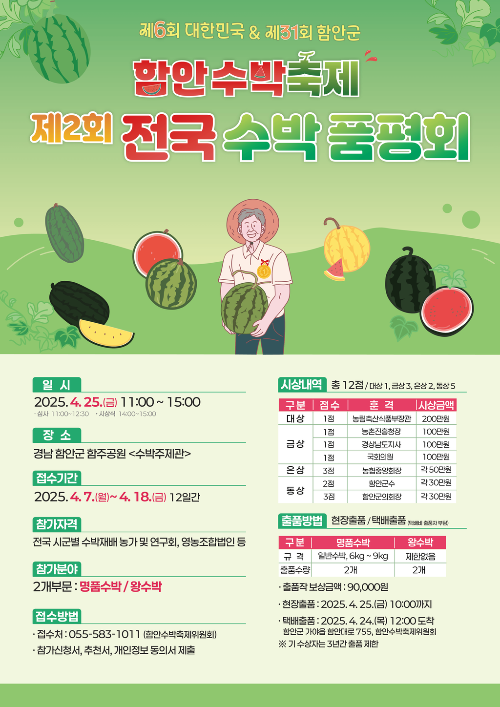 - 문의: 함안수박축제위원회(055-583-1011) / 함안군농업기술센터 원예유통과(055-580-4512~4)