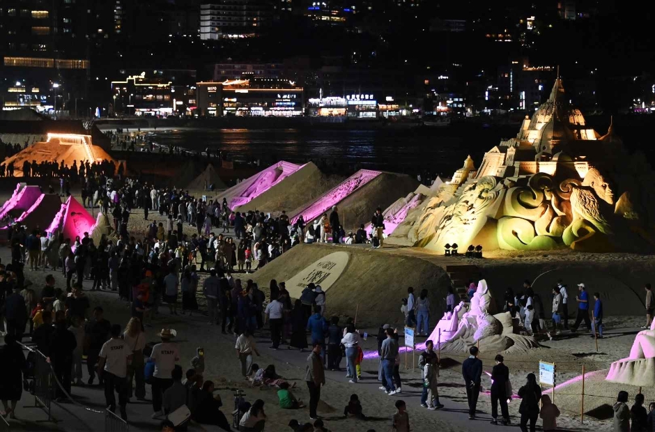 특히 밤 시간대에는 조명이 더해져 낮과는 전혀 다른 감성의 모래 예술을 감상할 수 있어 야간 방문객도 꾸준히 증가하는 추세입니다.