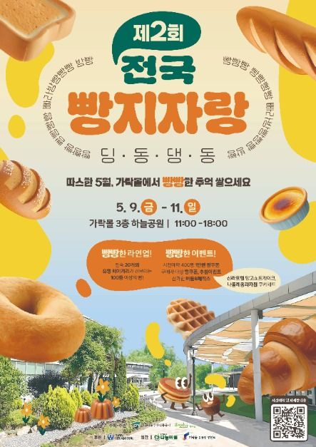 전국 각지의 유명 베이커리가 한자리에 모이는 이번 축제는 서울 송파구 가락몰 3층 하늘공원에서 무료로 진행되며, 전국 빵지순례의 종착지라 불릴 만큼 다양하고 풍성한 빵 경험을 제공합니다.