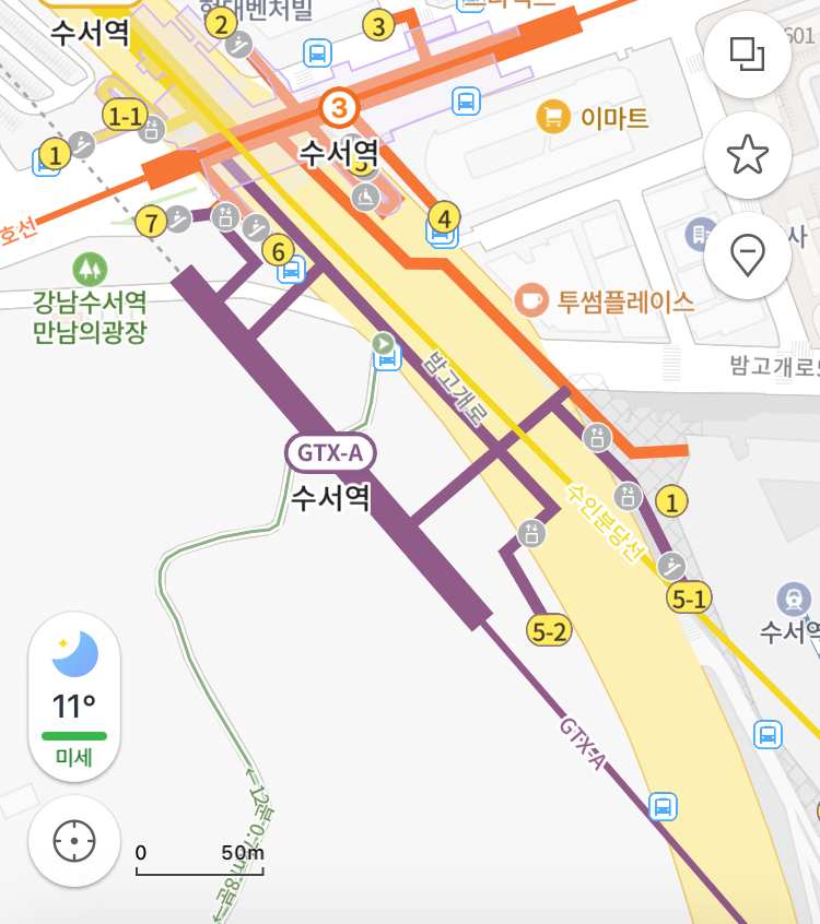 GTX-A 개통과 함께 기존 수서역 외부에 3개의 신규 출구가 신설되었습니다.
