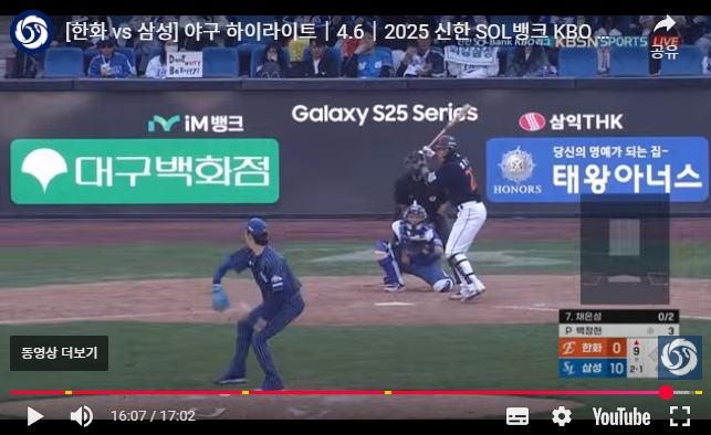- 상대: 한화 이글스