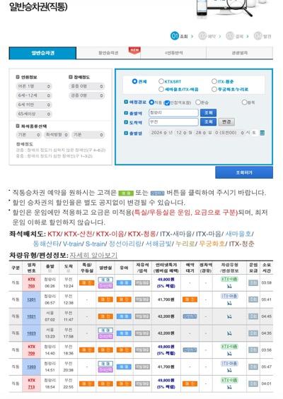 • 청량리-부산(부전): 운임은 추후 한국철도공사 코레일 공식 홈페이지를 통해 확인 가능합니다.